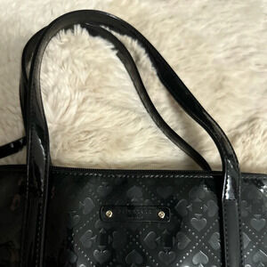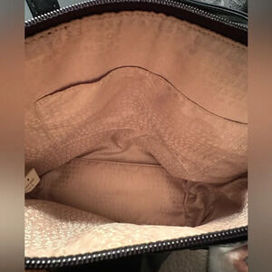Kate Spade print fabric lined interior with zippered pocket and two open slip pockets