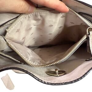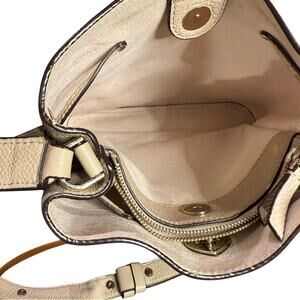 Kate Spade pebble leather purse in cream, in good condition, has some light marks on the outside that have not been attempted to remove the inside is in excellent condition. Has an adjustable shoulder strap.