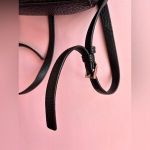 Kate Spade pebbled leather backpack in black 100% cowhide leather. Poly lining. Adjustable belt straps. Midweight. Gold zipper+hardware.