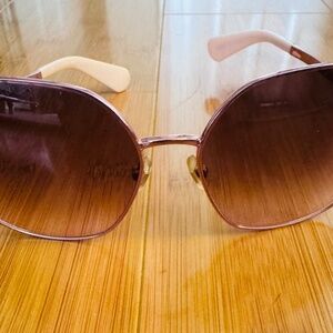Pink aviator sunglasses with rose gold frame and accents. Great condition, comes with original case.