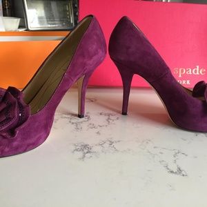 Excellent condition! Gorgeous purple suede with sequin detail on ruffle toe. Worn twice, practically brand new (apart from slight wear on sole, see photos).