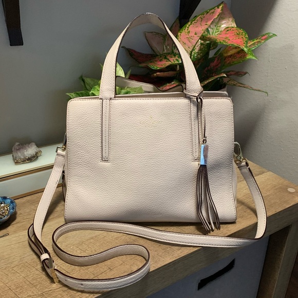 Authentic Kate Spade purse. Light blush color. Good condition, not perfect though. There is a tear on the zipper tassle but that's the only sage on that. Other than that, it might need to be cleaned a little bit nothing crazy. Over all really cute and a perfect neutral bag!