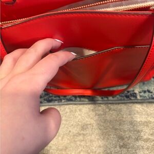 Chic and versatile tote. Bold red/coral color.