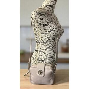 Flap closure with a pyramid stud lock hardware with the Kate Spade logo