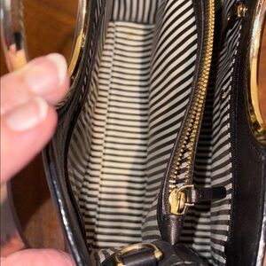 Kate Spade satchel Crossbody bag leather black goldtone round ring handles EUC