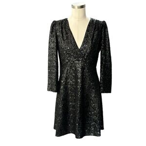 Kate spade sequin dress black plunging neckline size 2