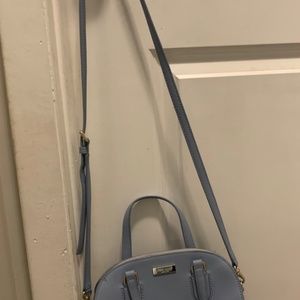 Small Kate spade shoulder or cross body bag in light blue. Slight discoloration inside bottom of bag from use.