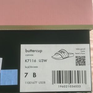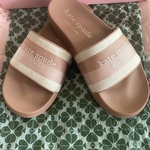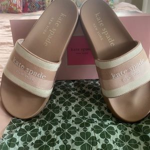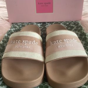Super cute color Kate Spade slides. Butter cup canvas. New in the box never worn.