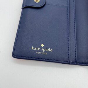 Kate Spade slim bi fold wallet Stripe blue pink button shut pocket book leather