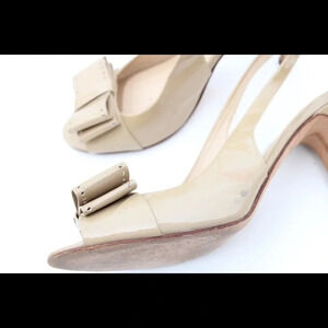 Wear to soles, scratches on heels, mark on patent leather (pic)
