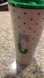 Drink your favorite beverage on-the-go in this stylish tumbler that features a signature initial and dotted pattern.