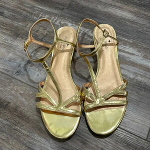 Kate Spade strappy gold low wedge sandals 1.25 inch heel