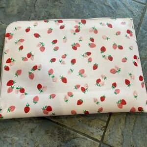 Adorable light pink strawberry print kate spade ♠️ zipper laptop case. Has a few light marks on exterior case as pictured. Most likely from a pink highlighter. Otherwise, in good condition. Length is about 15’’