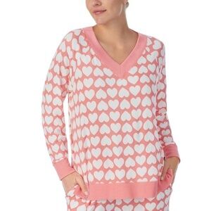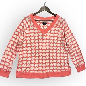 Kate Spade hearts lounge pullover, Vneck pullover, pink and white, oversized M.