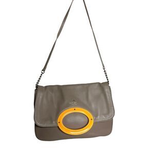 Kate Spade taupe gray supple leather acrylic chain shoulder bag Perry Shoreline