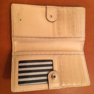 Cream and navy Kate Spade wallet in like new condition. No marks or stains inside or out.