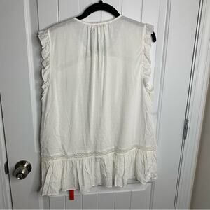 Kate Spade white swiss dot ruffle sleeveless top size large