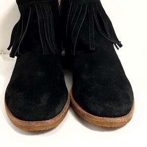 Kate Spade women's Betsie Too Fringed Black Suede Ankle Boots Booties US 9,5M.