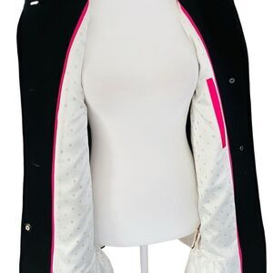 Kate Spade wool blend peplum ruffled button front coat in black Size XSmall .