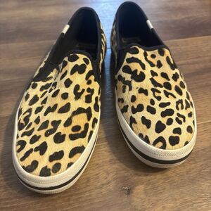 Kate Spade x Keds Sneakers Genuine Leather Leopard Print Calf Hair Slip On 6.5