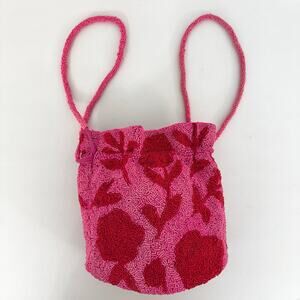 Kate Spade x Target Beaded Classic Rose Drawstring Bucket Bag in Pink Red Floral