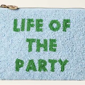 Make a statement with this stylish beaded clutch. Featuring vibrant blue and green colors, it's perfect for any celebration. Be the life of the party with this eye-catching accessory. Zipper pull has spade on one side and target logo on the other. 3 card slots, limited edition, measures 6”x8”.
