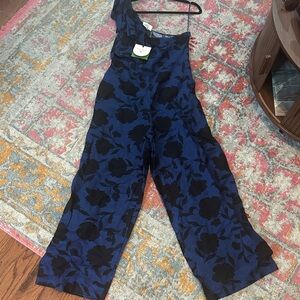 Kate Spade x Target Blue and Black Floral One-Shoulder Jumpsuit NWT