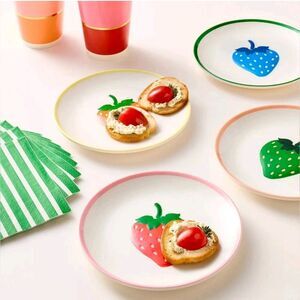 Kate Spade x Target Colorful Strawberry Appetizer Plate 4 Piece Melamine NWOT