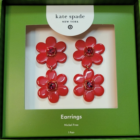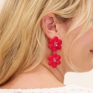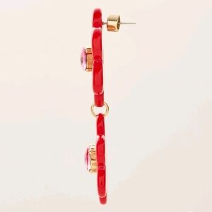 The hot collab of Spring. This is a vibrant coral red floral earring with gem stone and gold embellishments.