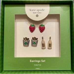 Kate Spade x Target set of 3 earring pairs NIB champagne fries strawberries