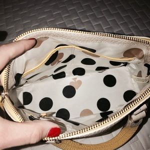 Very gently used. Beautiful, soft leather. Perfect size with inside compartments on both side, polka dot silk lining on interior. Perfect size for daily use or travel.