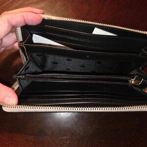 This is the Kate Spade large continental wallet in style cameron. It is in color warm beige with black. It is brand new with tags, never used.