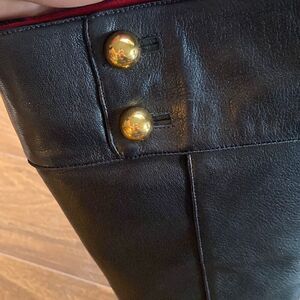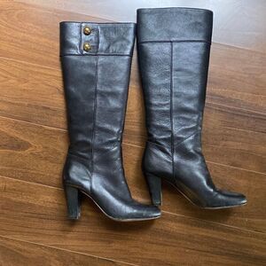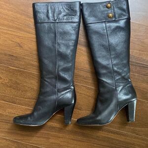 Kate Spade 7 Belinda Button tall black leather heeled boots