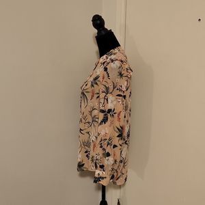 • Features - Botanical/Floral Print, Band Collar, Ruffle Detail @ Shoulder Seams & Back Yoke, Button Front & Lightweight Material