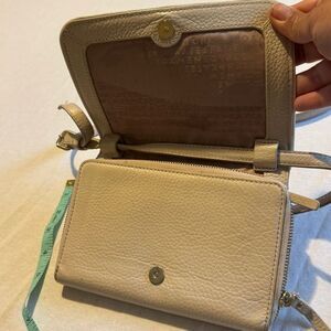 Kate Spade Chester Street Avie Tassel Light Tan Taupe & Off-White Ivory Pebbled Leather Flap Close Zip-Around Organizer Wallet Convertable Clutch Crossbody Bag