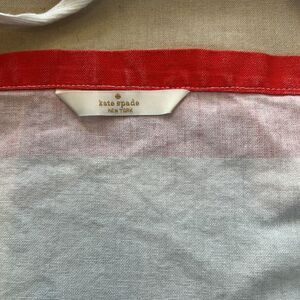 Kate Spade Colorful Striped Apron with measurements on the inside hem