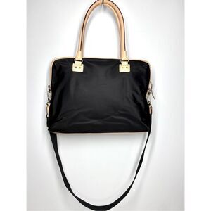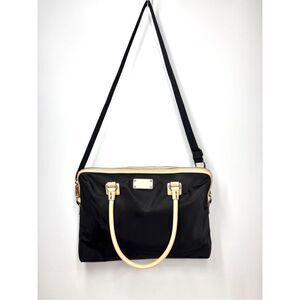 Kate Spade Kennedy Park Leather Nylon Laptop Bag Crossbody Handles Black 13 X 16
