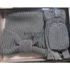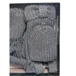 Kate Spade Heather Gray Knotted Bow Hat/Beanie, Mittens Box Set