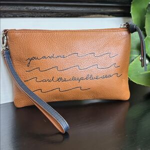 Stylish Kate Spade wristlet. Elegant design with a wrist strap. Perfect for any occasion. Very clean and like new . The front of the wristlet has an envelope design with cross green leather and silver toed hardware on the front. The Kate Spade name and logo is in Silvertone lettering and has a strong and secure fold over snap closing front. The bag folds open to reveal compartments for credit card and photo ID as well as an additional compartment for miscellaneous items and dollar bills. The removable wristlet strap is in excellent condition and this beautiful bluewristlet is perfect as a wallet and wristlet when a purse is too much. Very nice and non-smoking. Approximately 6.25 inches long and approximately 4 inches tall.