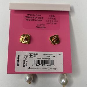 Kate Spade gold tone metal lock and spade dangle earrings with freshwater pearl. Signature spade clutch back post and NWT