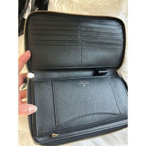 Kate Spade New York Black Gold Zip-Around & Logo Plate Kaden Wallet