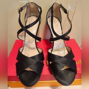 Kate Spade New York Black Satin Strappy Stiletto Sandals Sz.9 Ret. $378