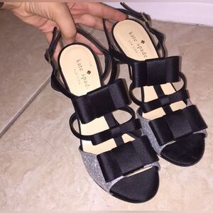 Kate Spade New York Ivy Silver Fine Glitter Black Heels Size 9 NWT