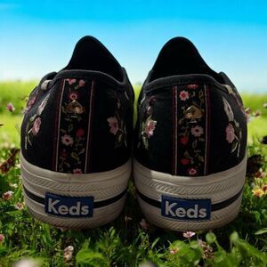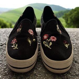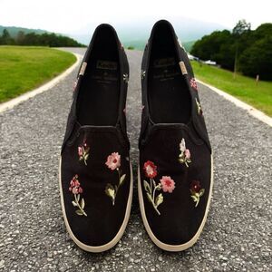 Kate Spade New York x KEDS Black Triple Decker Sneakers Embroidered Flowers Sz 9