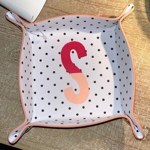 Charming Kate Spade NWT Trinket Tray with Polka dots and Pink trim. Features a bold red 'S' in the center. Perfect For Rings or Earrings Etc..