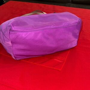 This Kate Spade tote is a striking purple hue and offers a sleek and modern design. Crafted with a shiny finish, it combines style and practicality for everyday use. Ideal for those who appreciate both fashion and functionality.