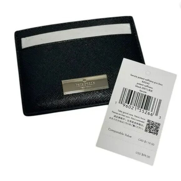 NWT*Retails$99* Kate Spade Kenzie Small Black Card holder. 4 exterior card slots, open middle compartment & front metal logo plate.