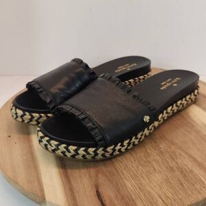 Kate Spade Zahara Black Leather Braided Flat Espadrille Sandals Slides Women's Size 8.5