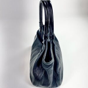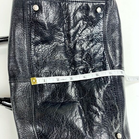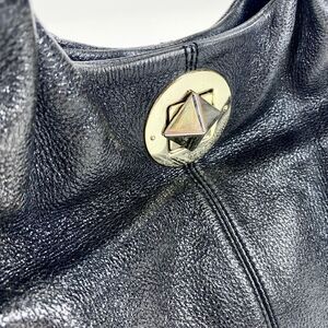 Kate Spade black leather shoulder bag w/ patent straps & gold twist clasp