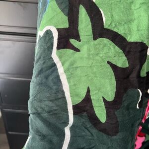 Please see last 3 pictures with pulled thread also pulled thread thru out just some of the one I took pictures of but it isn’t that noticeable when you are focused on the adorable bold print